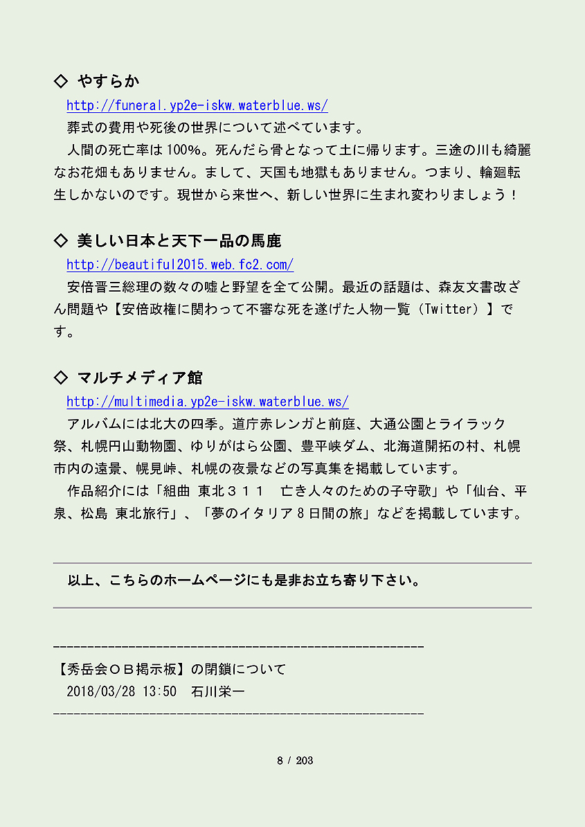 私が管理運営しているホームページ一覧 (記載されているURLに変更があります)