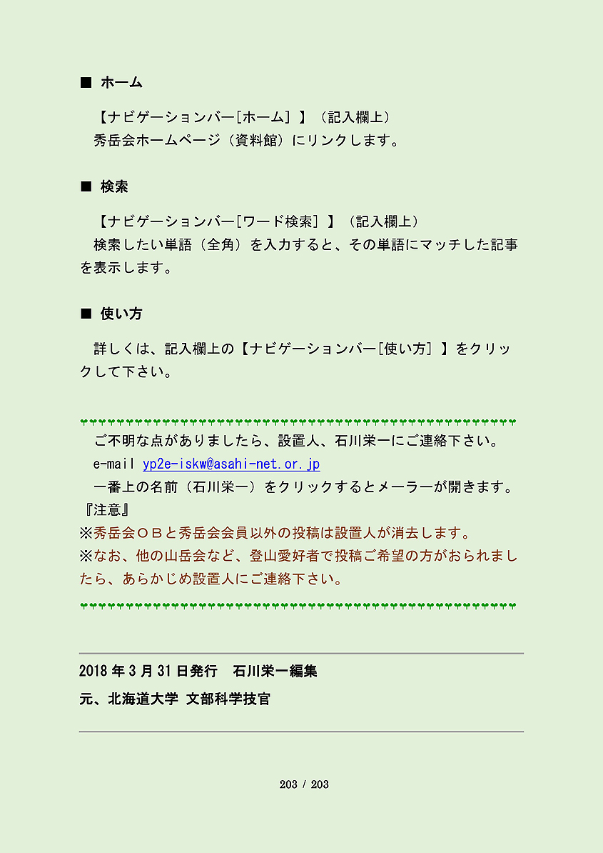 HOME ニュース 山行記 アルバム 山行映画 写真館 山行案内 リンク 更新履歴 お勧め