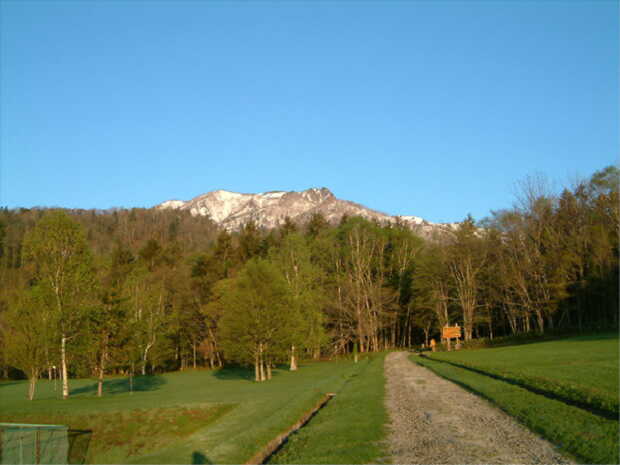 気が緩んでいたためか、途中ユーフレ小屋に向かう覚太郎コースへ迷い込んだことに気づく。が、すぐに東側の尾根に戻って無事新道コース登山口に到着した。山部太陽の里キャンプ場の芝生で遊ぶ母子達に初夏の暖かい日差しが降り注いでいた。