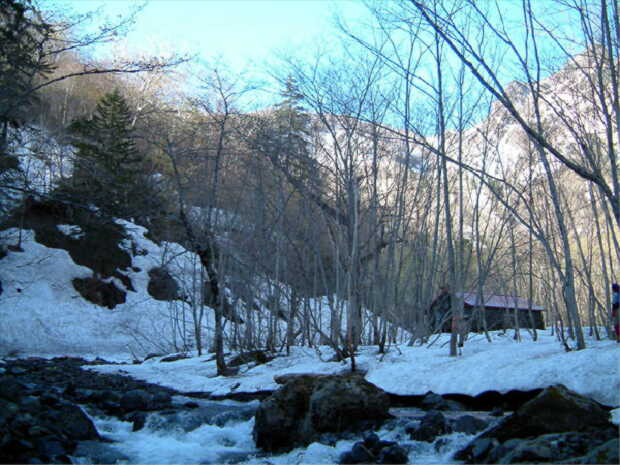 幸いにも(予想通り?)まだ厚い雪渓で埋まり難なく通過できた。谷はまだ日陰で雪は固く、インゼル(岩の島)を越えてから安全を期して早めにアイゼンを装着した。