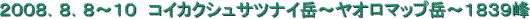 3年前にコイカクシュサツナイ岳に登って初めて対面して以来、何時かは登ってみたいと思ってはいたが、ハイ松と岩稜の続く狭い稜線を歩く困難さにためらいもあった。天候不順の続く今夏、一週間ほど天候の安定が予想された今回ついに挑戦する機会を得た。