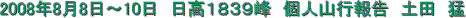 8/10(日) 3時半起床。今朝も1839峰はどっしりと鎮座していた。太平洋側は雲海に浮かぶ峰々が美しい。4時半ごろ、その雲海から太陽が昇りだす。なんとも荘厳で美しい日の出ショウだ。朝食後下山開始の準備をする。テントやフライは濡れて重いが、そのままザックに詰め込んだ。