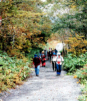 道中、メンバーの自己紹介があり、それぞれに山の経験などをお話しされていました。中には70歳の方もいらっしゃり、とてもそのような年齢には見えないしっかりした体つきでかくしゃくとされていました。