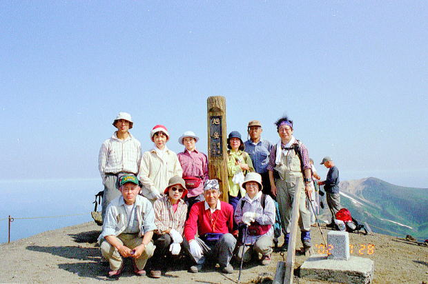 2週間前に鳥海さんにトレーニングにつれて行っていただいた手稲山のガレ場に比べればかなり楽だった。さすがに眺めはすばらしく、金庫岩を右手にロープウエーを左に見下ろすと山肌と赤みがかった稜線がブルーの中に浮かび上がって右手の沼の平までくっきりと見渡せた。ひと休みして中岳を目指し下った。間もなく足元不安定な軽石状の滑りやすい急斜面が来た。