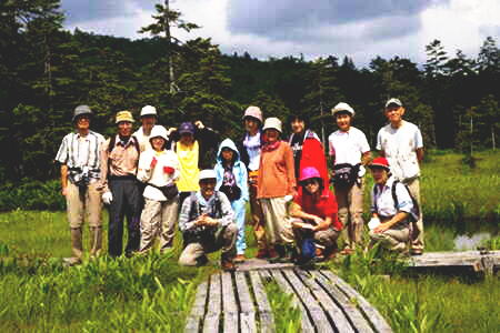 インターネットで検索して以来、訪ねてみたい湿原だった。夏休みの土曜日だというの に我々のグループのほかに一家族だけだった。駐車場から湿原入り口までの1.6kmの遊歩道にはウッドチップが敷き詰められていて足に優しい。