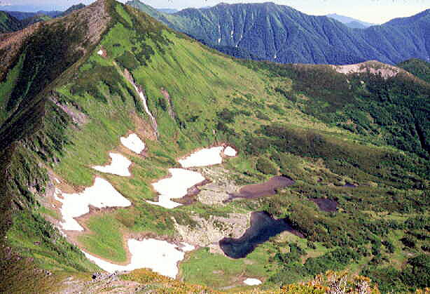 日高幌尻岳山頂から七つ沼カールへ 「撮影 本間 彰」
